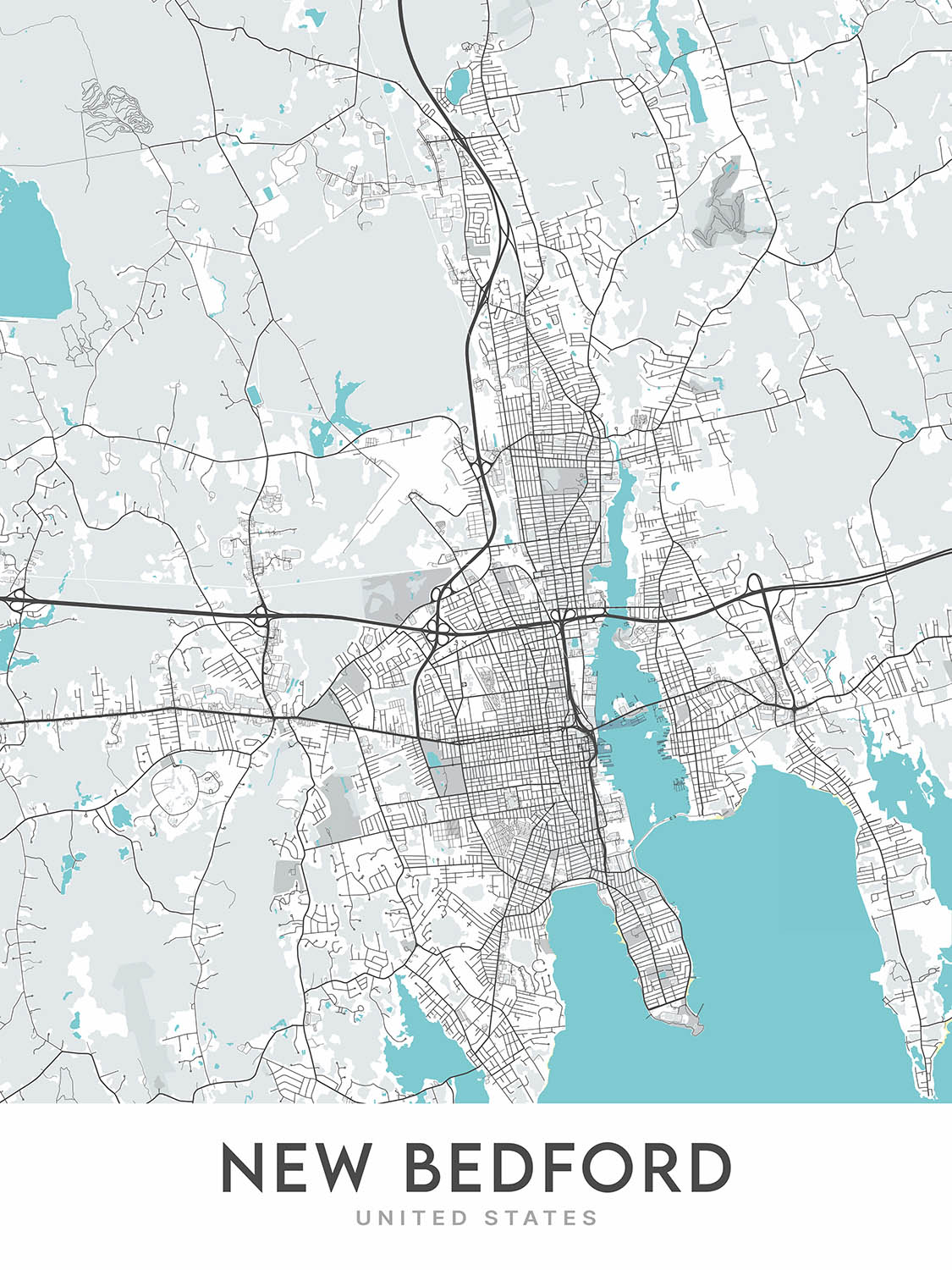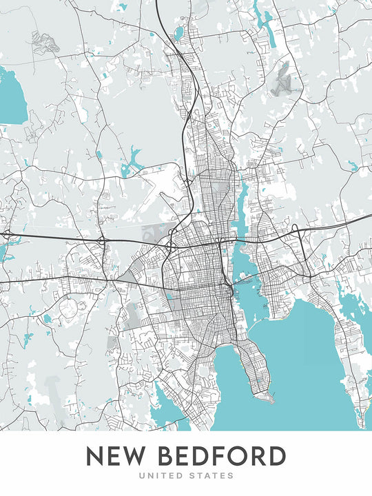 Este mapa es imprescindible para cualquiera que ame New Bedford o para aquellos que aprecien la cartografía hermosa y funcional. Su combinación de diseño moderno, información detallada y atractivo estético lo convierte en una pieza verdaderamente única y especial.