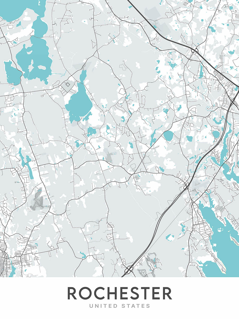 Esta creación original de The Unique Maps Co. presenta una cartografía única, un diseño moderno y combinaciones de colores únicas. El mapa se centra en la ciudad de Rochester y sus alrededores, incluidas las ciudades de Marion, Mattapoisett, Acushnet y Fairhaven. El mapa también incluye carreteras principales como la Ruta 28, Ruta 105, Ruta 6 y Ruta 18, así como rutas como la I-195, MA-24 y MA-139. Las carreteras que aparecen en el mapa incluyen la US-6 y la US-44.