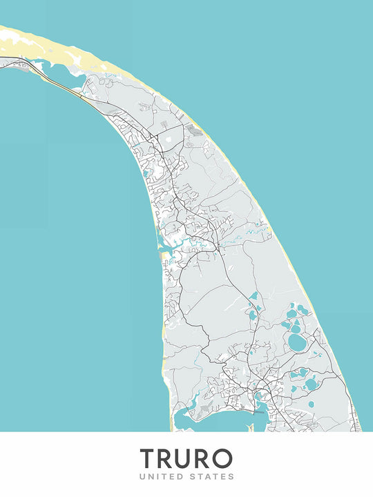 Mapa moderno de la ciudad de Truro, MA: Truro Center, North Truro, South Truro, East Truro, West Truro