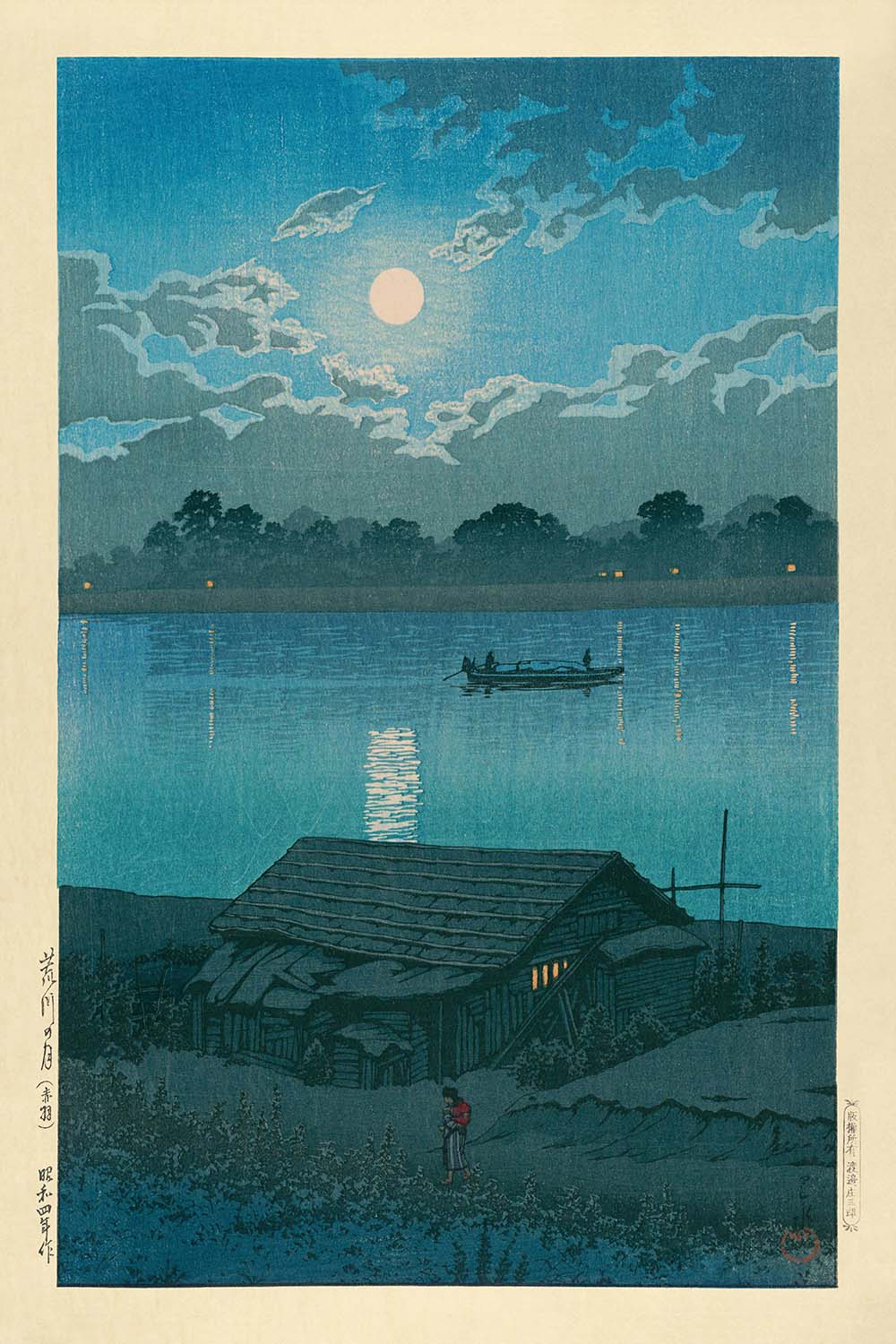 Luna sobre el río Ara en Akabane de Hasui Kawase, 1935