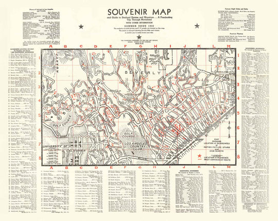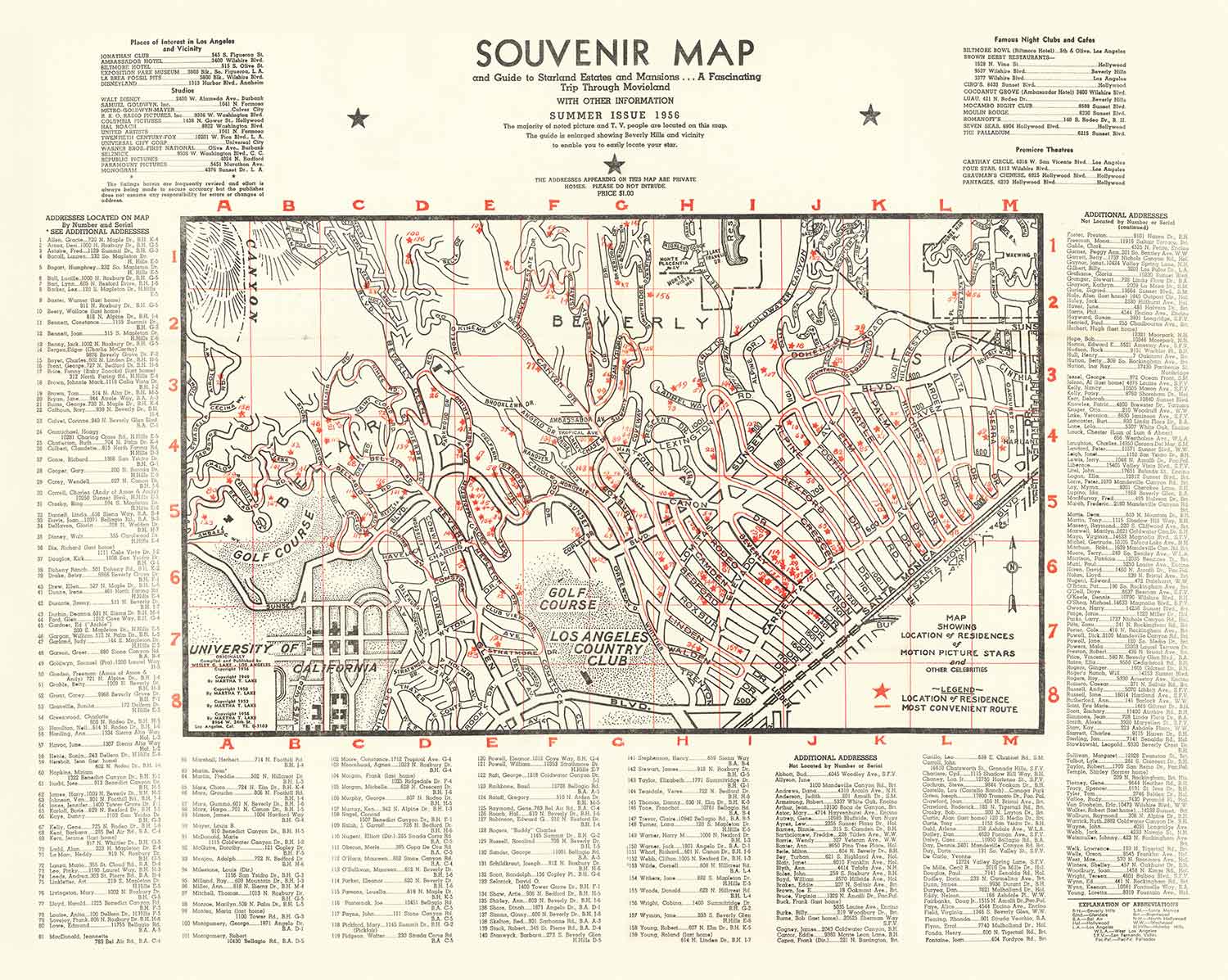 Un mapa bastante interesante de Beverly Hills, Santa Mónica y Bel-Air que te guía directamente a la puerta de casi todas las famosas estrellas de Hollywood de los años 50 - de ahí el nombre del mapa, "Starland".