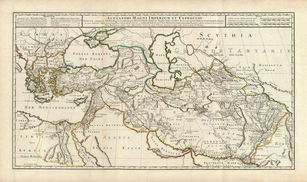 Esta maravillosa antigua mapa del Imperio de Alejandro Magno fue publicada originalmente en 1731. Fue creada por Guillaume de L'Isle.