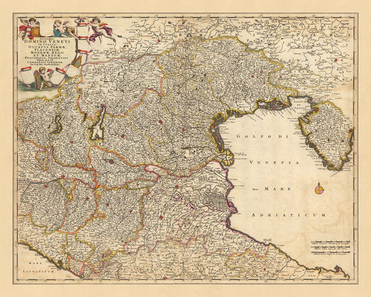 Nicolaes Visscher II fue un renombrado cartógrafo del Siglo de Oro holandés y este mapa ejemplifica su meticulosa atención al detalle y su compromiso con la precisión. Proporciona una perspectiva única del paisaje político y geográfico del dominio veneciano, ofreciendo una visión fascinante del pasado. Este mapa no es sólo un artefacto histórico, sino una obra de arte que captura la esencia de una época pasada.