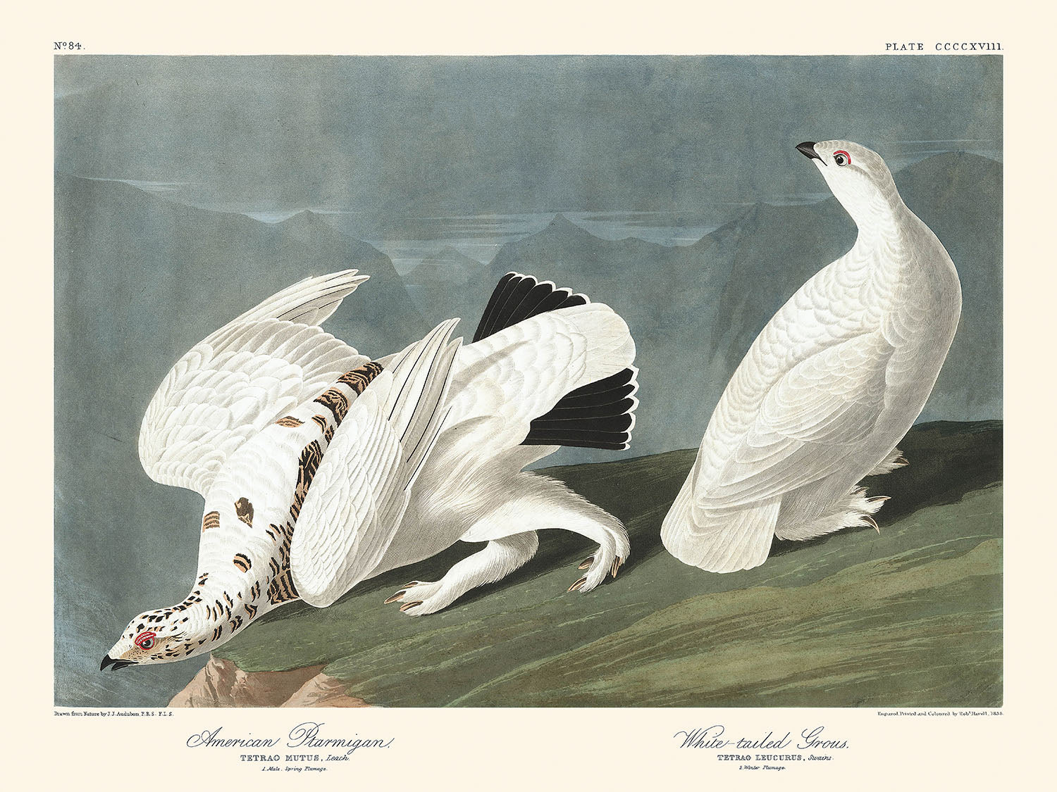 Perdiz nival americana y urogallo de cola blanca, de John James Audubon, 1827