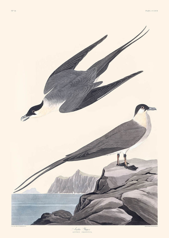 El Yager Ártico, publicado por primera vez en 1827, es una cautivadora ilustración de un pájaro de la monumental obra de John James Audubon, Las Aves de América. Esta exquisita ilustración captura bellamente la esencia y la naturaleza dinámica del Yager Ártico.