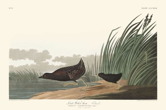 La "gallina de agua menor" es más que una simple obra de arte; es una investigación sobre los comportamientos ecológicos y las anatomías de los pájaros rascones conocidos como Rallus jamaicensis. Audubon detalla detalladamente el plumaje y las características, basándose en relatos de contemporáneos como Titian Peale para enriquecer sus representaciones y ofrecer información sobre esta enigmática ave, cuya nomenclatura ha suscitado debates a lo largo de los años.