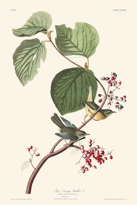 Descubra la cautivadora belleza de la Reinita de los Pantano de Pinos, impresa a partir del ilustre Birds of America de John James Audubon, publicado por primera vez en 1827. Esta ilustración de aves muestra la extraordinaria atención de Audubon a los detalles y su maestría al retratar el vibrante mundo de la vida aviar.