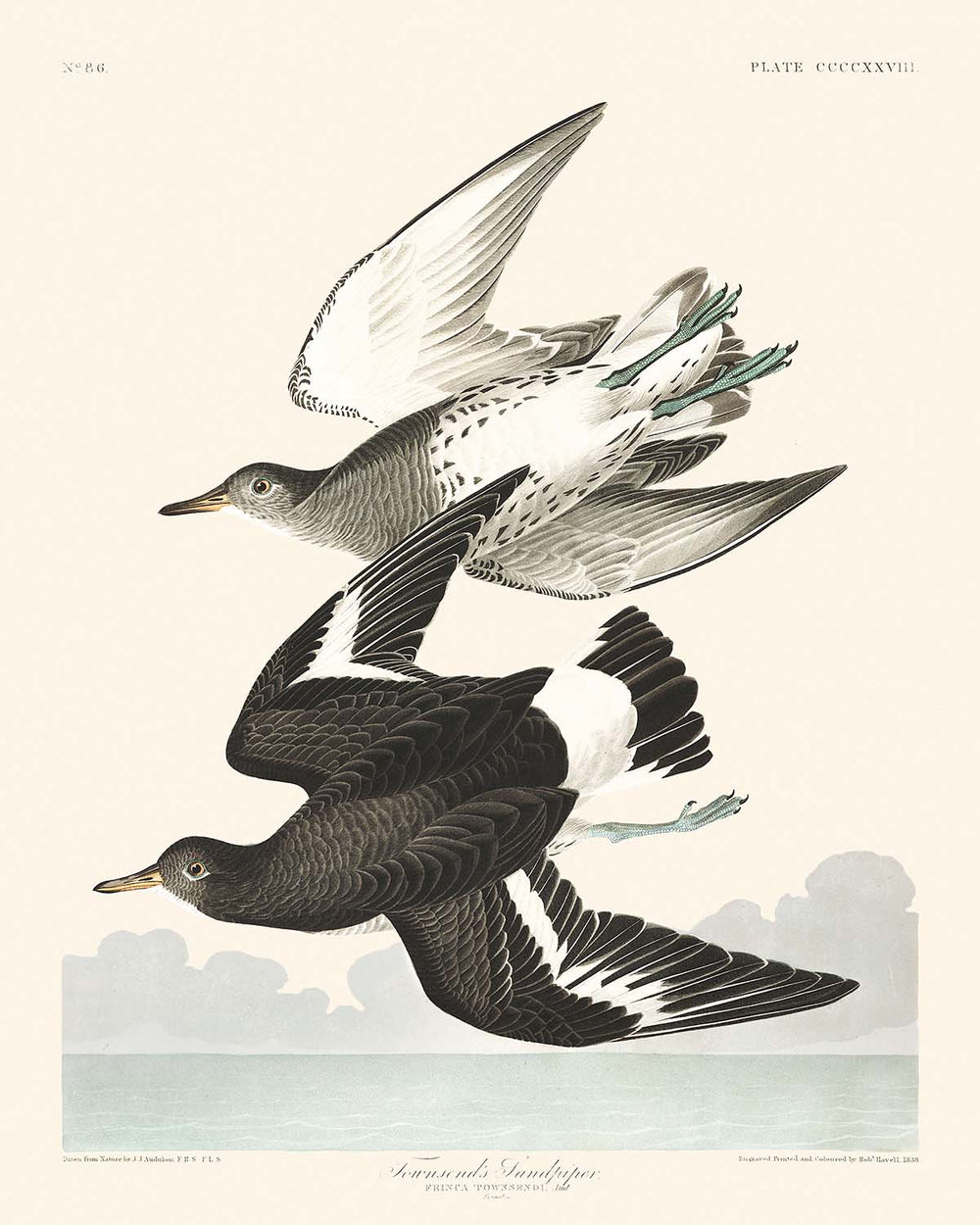 Presentamos el Playero de Townsend, una hermosa ilustración de ave del renombrado John James Audubon. Creada en 1827 como parte de su obra maestra, "Las Aves de América", esta obra captura la elegancia y los intrincados detalles de las especies de aves nativas de América del Norte. Audubon, un naturalista y pintor célebre, dedicó gran parte de su vida a estudiar e ilustrar la diversa vida aviar del continente, y su colección sigue siendo una referencia seminal para ornitólogos y amantes del arte por igual.