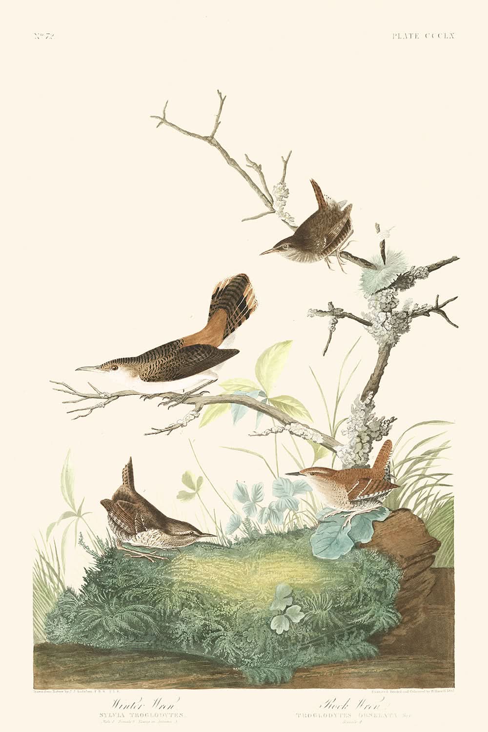 Cucarachero de invierno y cucarachero de roca, de John James Audubon, 1827