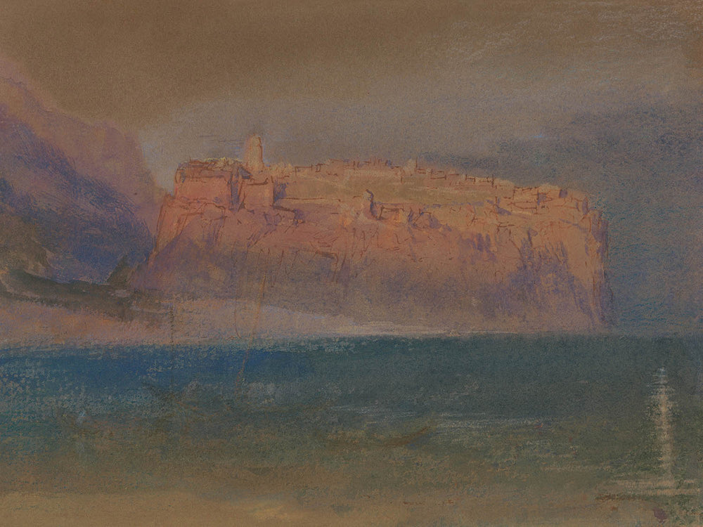 Introducing "Corsica," a captivating work created in 1830 by the renowned artist Joseph Mallord William Turner—best remembered simply as Turner. Known for his profound mastery of landscape and atmospheric luminosity, Turner stands as one of Britain's most influential and beloved painters. "Corsica" magnificently captures his unique vision, presenting a scenic vista that evokes both the mystique and majesty of the Mediterranean island, bathed in sublime light and color.