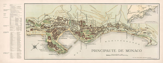 Históricamente significativo, este mapa fue creado durante la Segunda Guerra Mundial, un período de agitación y transformación global. Refleja la resiliencia de Mónaco y su continuo atractivo como un refugio de lujo y cultura. Ya seas un entusiasta de la historia, un aficionado a la cartografía o un amante de la elegancia atemporal de Mónaco, este mapa ofrece un fascinante viaje a través del tiempo, invitándote a explorar las calles históricas y el rico patrimonio de una de las ciudades más encantadoras del mundo.