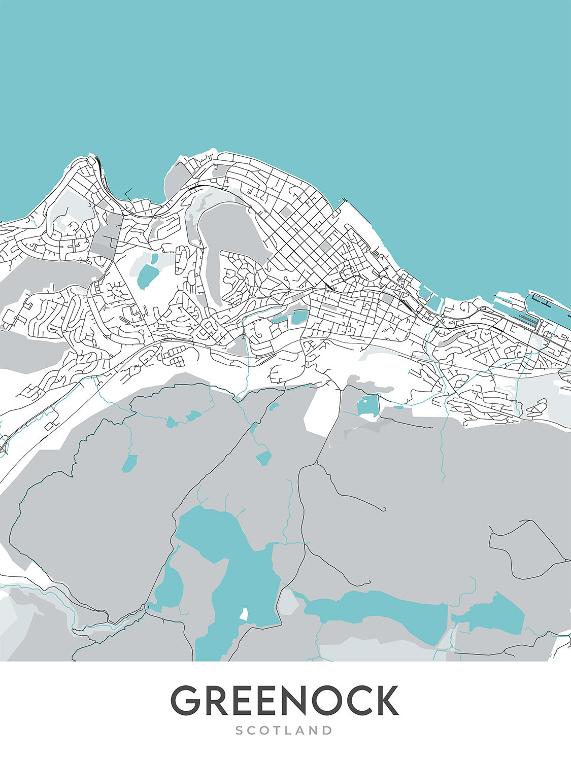 Descubra el encanto y el intrincado diseño de Greenock con este exquisito mapa de la ciudad moderna creado por The Unique Maps Co. en 2024. Este mapa meticulosamente diseñado muestra el corazón de Greenock y abarca varios de sus vecindarios más vibrantes. Desde el bullicioso centro de la ciudad de Greenock hasta las serenas extensiones del West End, cada área está capturada con precisión y elegancia. El mapa ofrece una vista aérea de la detallada red de calles de Greenock, ilustrando hábilmente el paisaje urbano sin el desorden de etiquetas, permitiendo a los espectadores apreciar el arte cartográfico puro.