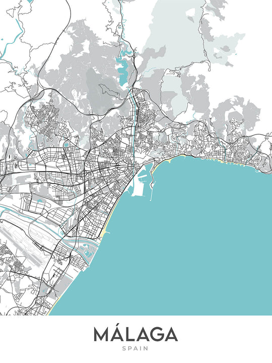 Este mapa de Málaga, creado por The Unique Maps Co., es una representación moderna y detallada de la ciudad. Captura la esencia de Málaga, mostrando sus vibrantes vecindarios, monumentos icónicos y una intrincada red de calles. El mapa es una obra maestra visual, diseñada para ser tanto informativa como estéticamente agradable, lo que lo convierte en una adición perfecta para cualquier hogar u oficina.