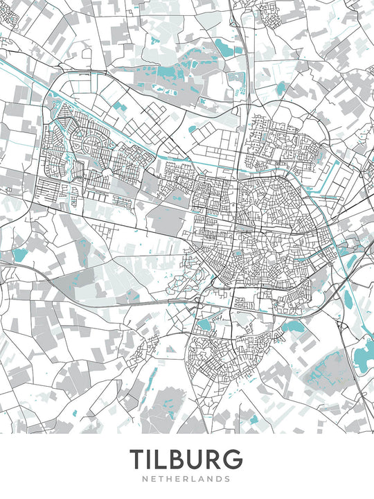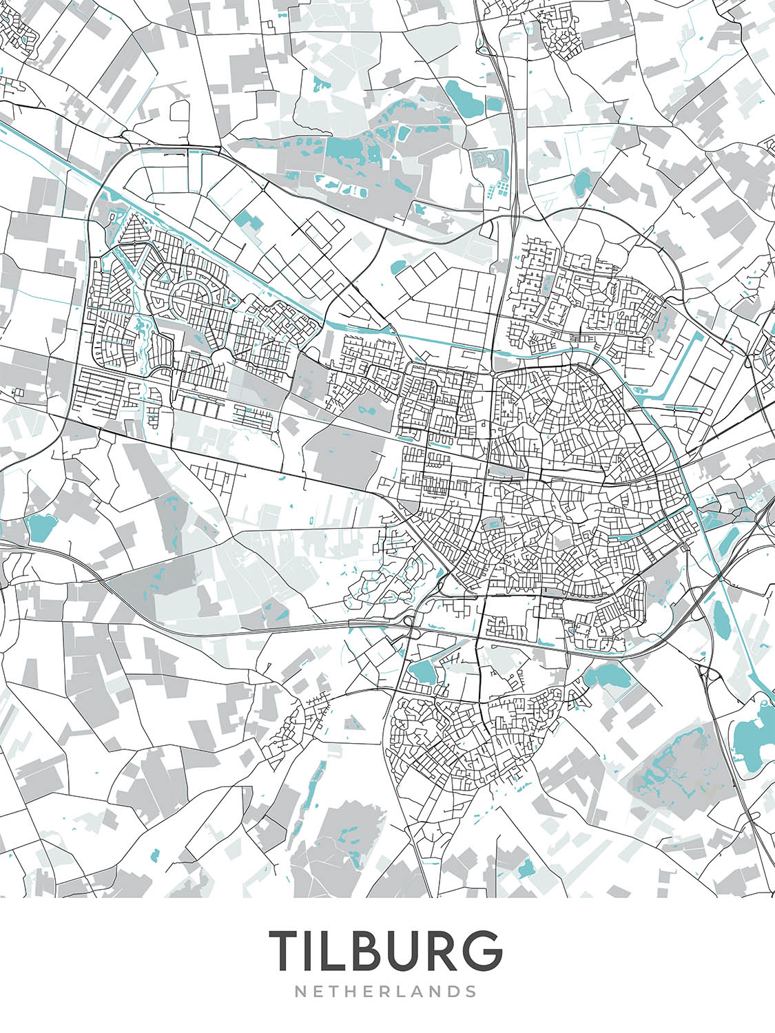 El mapa está meticulosamente elaborado con atención al detalle, lo que garantiza que cada calle, punto de referencia y vecindario esté representado con precisión. El resultado es un mapa visualmente impresionante, informativo y estéticamente agradable. Si usted es un residente local, un turista o simplemente alguien que aprecia los mapas hermosos, este mapa de Tilburg es imprescindible.