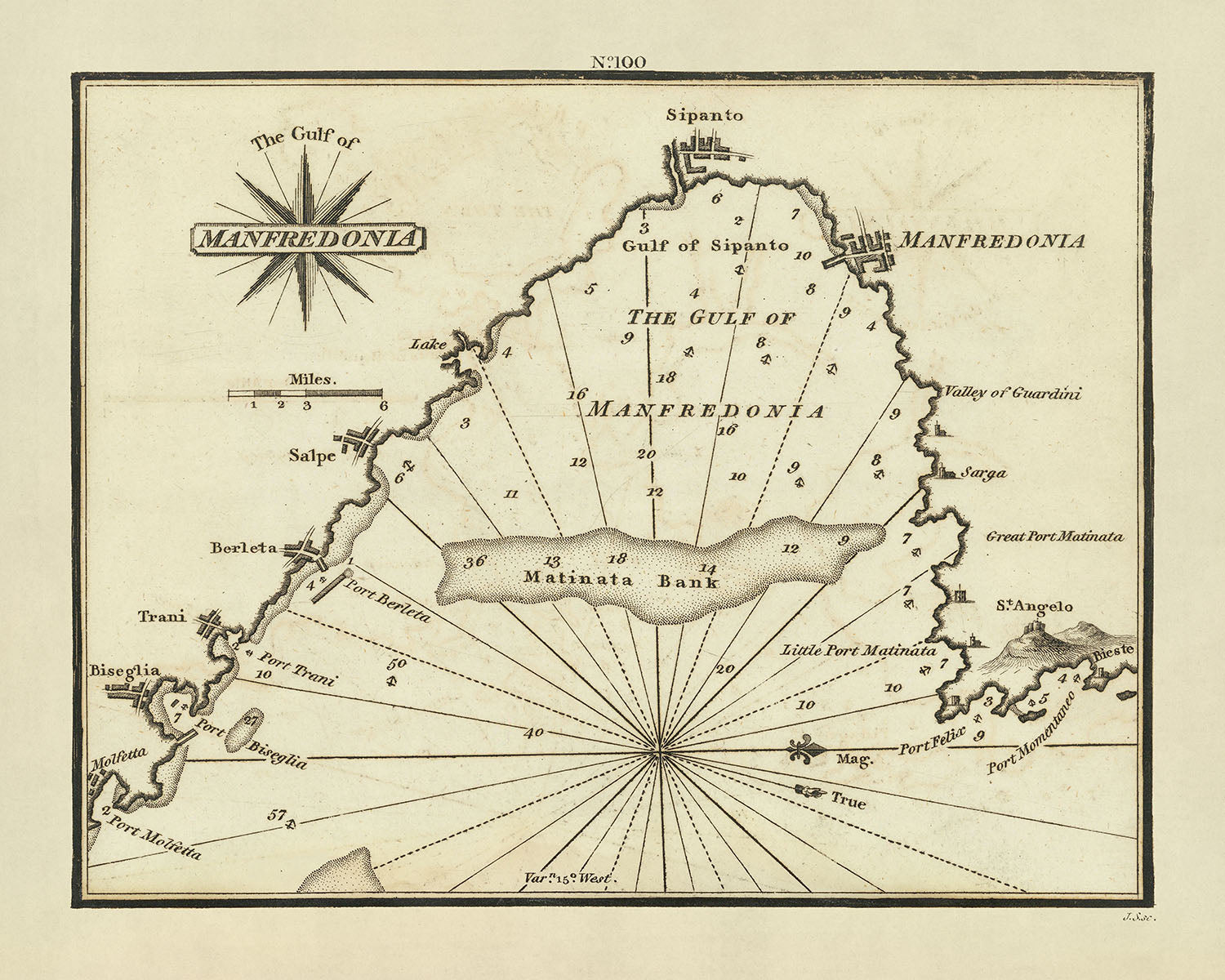 Este mapa del "Golfo de Manfredonia" es más que una herramienta de navegación; es un portal al pasado, invitándonos a explorar la rica herencia marítima del Mediterráneo a través de la lente de la excelencia cartográfica inglesa.