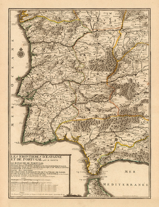En la época en que se creó este mapa, el Algarve estaba bajo dominio portugués y era un importante centro comercial para el país. Gibraltar, por su parte, era un enclave militar estratégico para el Imperio Británico, ya que constituía una puerta de entrada al Mediterráneo. El año 1742 también marcó el final de la Guerra de Sucesión Austriaca, que tuvo un impacto significativo en la política europea y en las fronteras territoriales.