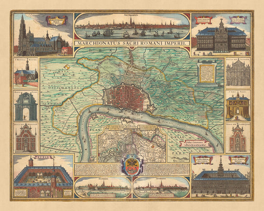 Amberes, el punto central del mapa, era una ciudad bulliciosa ya en el siglo XVII. Conocida por su comercio de diamantes y su vibrante cultura, está representada con gran detalle. Bergen op Zoom, otra ciudad notable en el mapa, era una ciudad fortaleza estratégica y un importante centro comercial. El mapa también muestra Hoogerheide, una ciudad pequeña pero de importancia histórica, conocida por su ubicación estratégica.