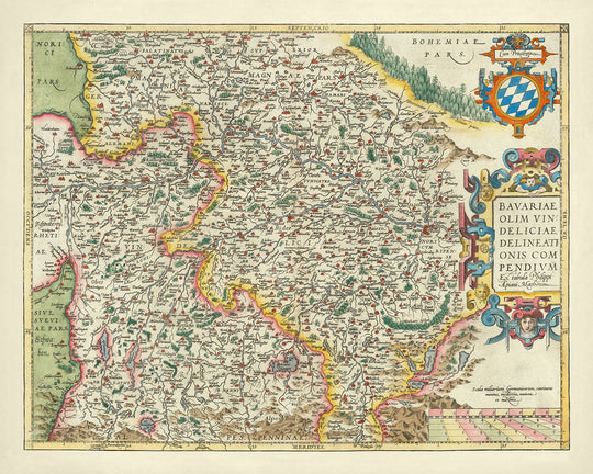 La importancia histórica de este mapa va más allá de su precisión geográfica y belleza artística. Como parte del "Theatrum Orbis Terrarum" de Ortelius, este mapa representa un hito importante en la historia de la cartografía. Refleja el creciente interés por la exploración y el deseo de crear representaciones completas y precisas del mundo. La representación detallada de Baviera y sus regiones circundantes en el mapa ofrece una visión del pasado y proporciona información valiosa sobre el paisaje político, cultural y natural de la época. Este mapa no es solo una herramienta de navegación, sino una ventana a la historia y el patrimonio de Baviera.