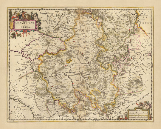 Sumérgete en los intrincados detalles de 'Champaigne et Brie, etc.', una impresionante representación de la belleza histórica y geográfica de Champagne y Brie, ubicada en la zona más amplia de la actualidad en Francia. Traducido como 'Champagne and Brie etc', este mapa ofrece una encantadora visión del pasado, elaborado por las hábiles manos de Nicolaes Visscher II en 1690. Visscher II, nieto de Claes Janszoon Visscher, proviene de la Edad de Oro holandesa, un período conocido por sus notables contribuciones al mundo de la cartografía.