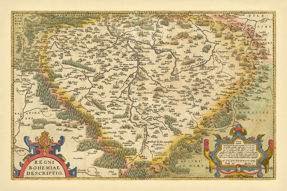 - Este mapa es significativo por su representación detallada de Bohemia durante finales del siglo XVI.