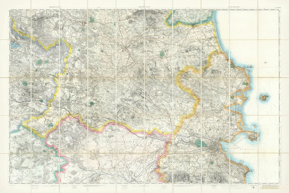 - Mapa finamente ejecutado del área alrededor de Dublín y Meath.