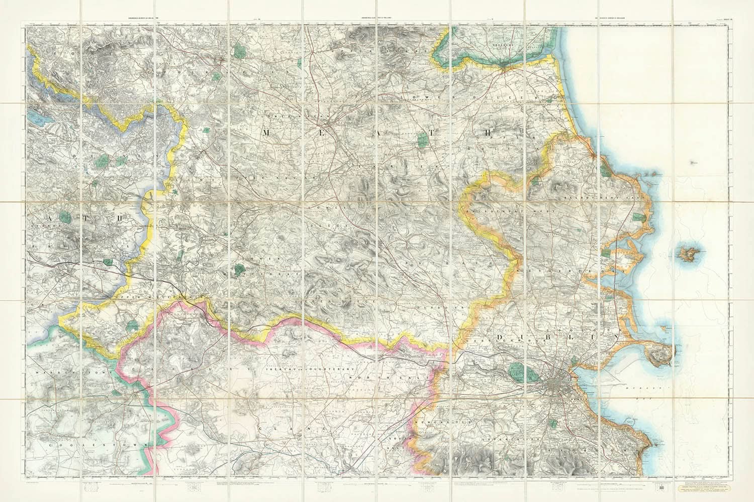 Gran Mapa Antiguo de Dublín y sus Suburbios, 1868: Meath, Clane, Rathdown, Drogheda