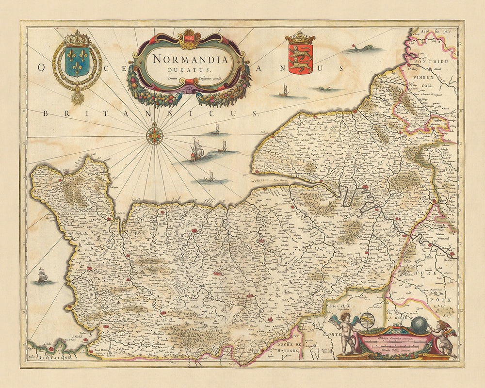 Sumérgete en la rica historia del Ducado de Normandía con este mapa meticulosamente detallado elaborado por Nicolaes Visscher II en 1690. El mapa, titulado 'Normandia Ducatus' o 'Ducado de Normandía' en inglés, ofrece una mirada en profundidad a la situación política. divisiones y regiones durante un momento crucial de la historia francesa.