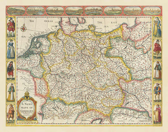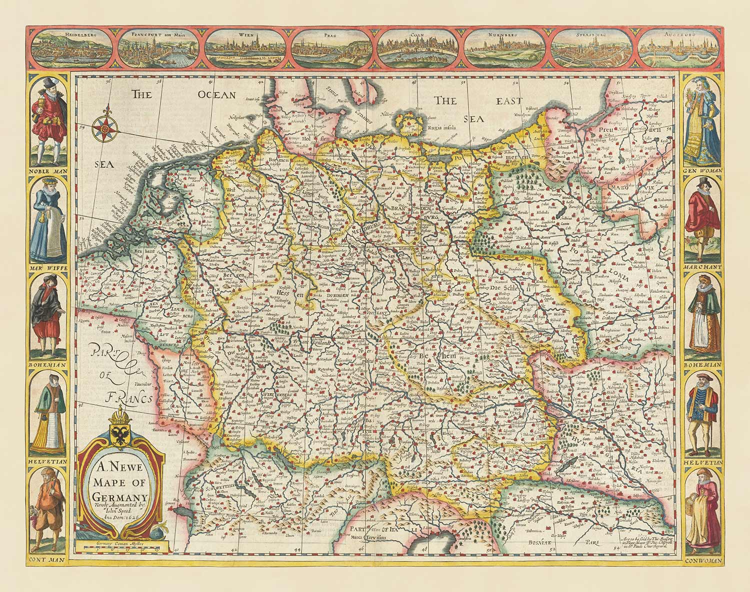 Mapa antiguo de Alemania por John Speed, 1627: Imperio Holy Romano, Imperio Alemán