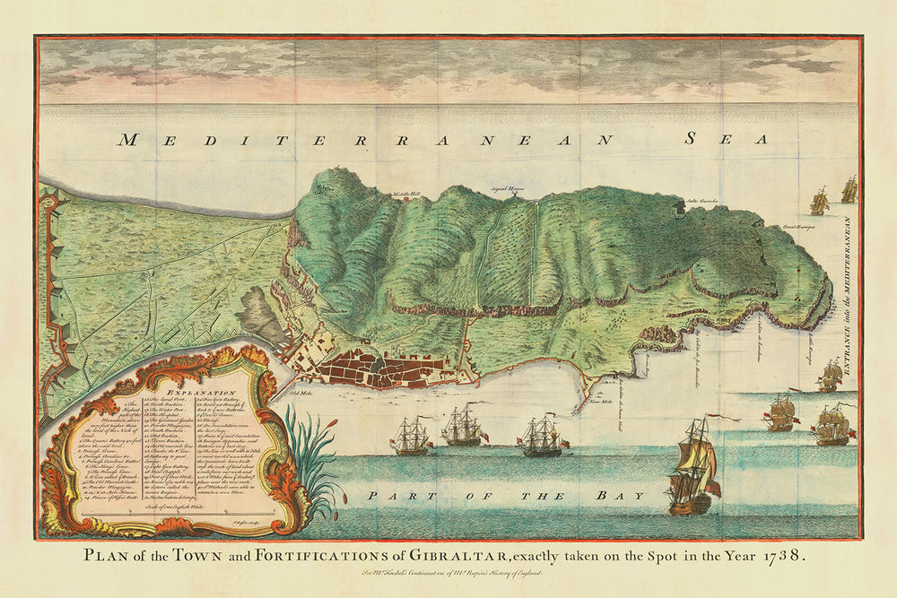 Este mapa fue creado durante la Guerra de Sucesión de Austria, un conflicto europeo que duró de 1740 a 1748. Gibraltar fue un lugar estratégicamente importante durante la guerra, ya que controlaba la entrada al Mar Mediterráneo.