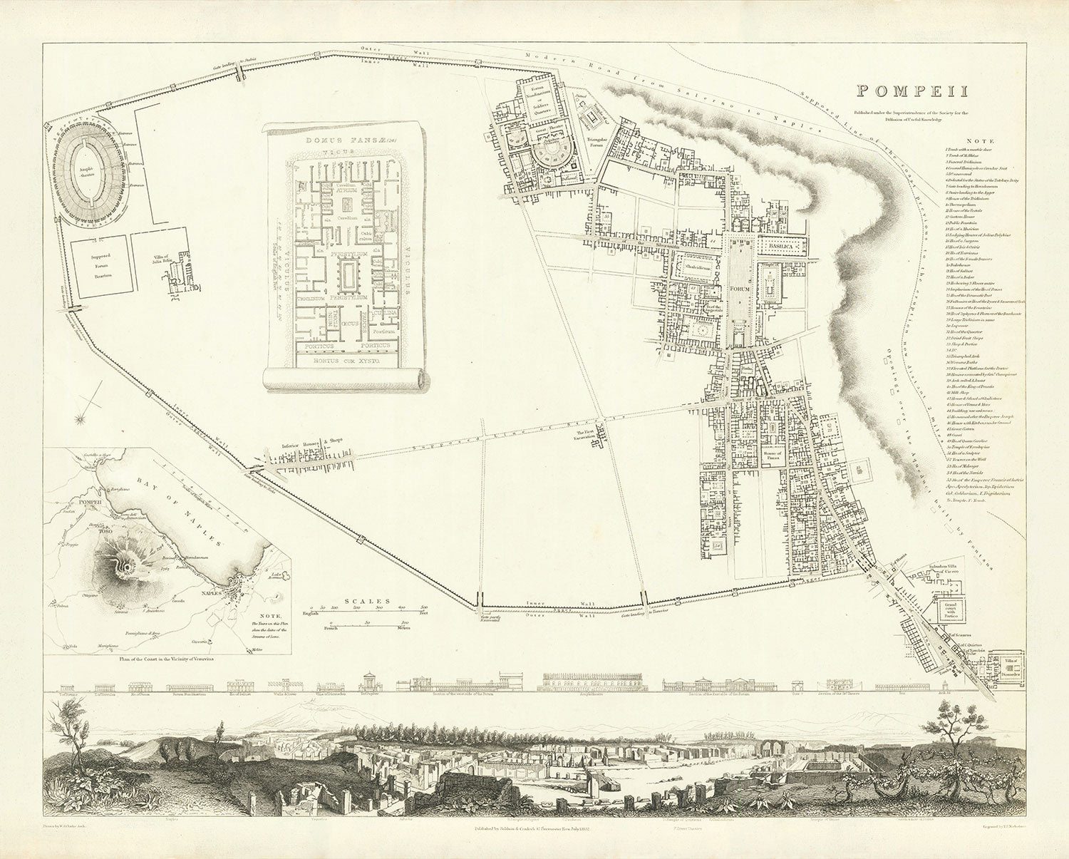 Este magistral mapa de Pompeya fue publicado originalmente en 1832. Fue creado por SDUK para la Sociedad para la Difusión del Conocimiento Útil (SDUK).