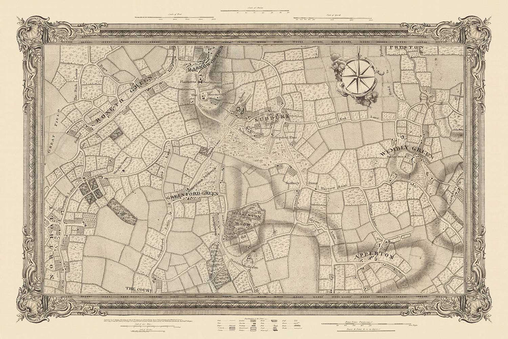 Northolt también se puede ver en este mapa. En el siglo XVIII, algunas de estas tierras estaban cercadas, donde se cultivaba hierba y se vendía como heno en Londres; necesario en ese momento para proporcionar alimento a los caballos en Londres, donde no tenían acceso adecuado a pastos y el pastoreo no era viable.