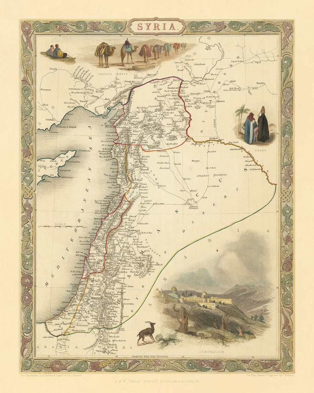 - Clearly marked boundaries of historical regions such as Syria, Palestine, Lebanon, and Cyprus