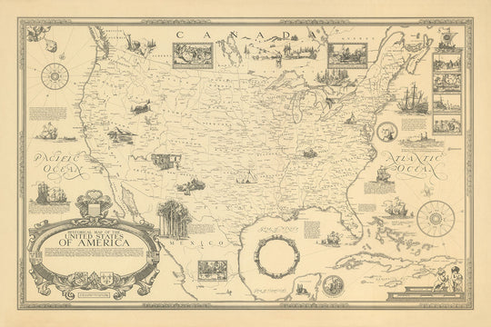 Antigua Mapa Pictórico de los Estados Unidos por Clegg, 1926