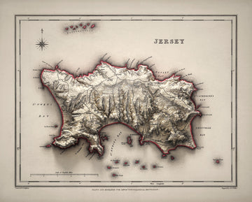 Abrace el encanto del pasado con el Antiguo mapa de Jersey de Samuel Lewis en 1844, una pieza extraordinaria que da vida a la historia y celebra el patrimonio único de la isla.