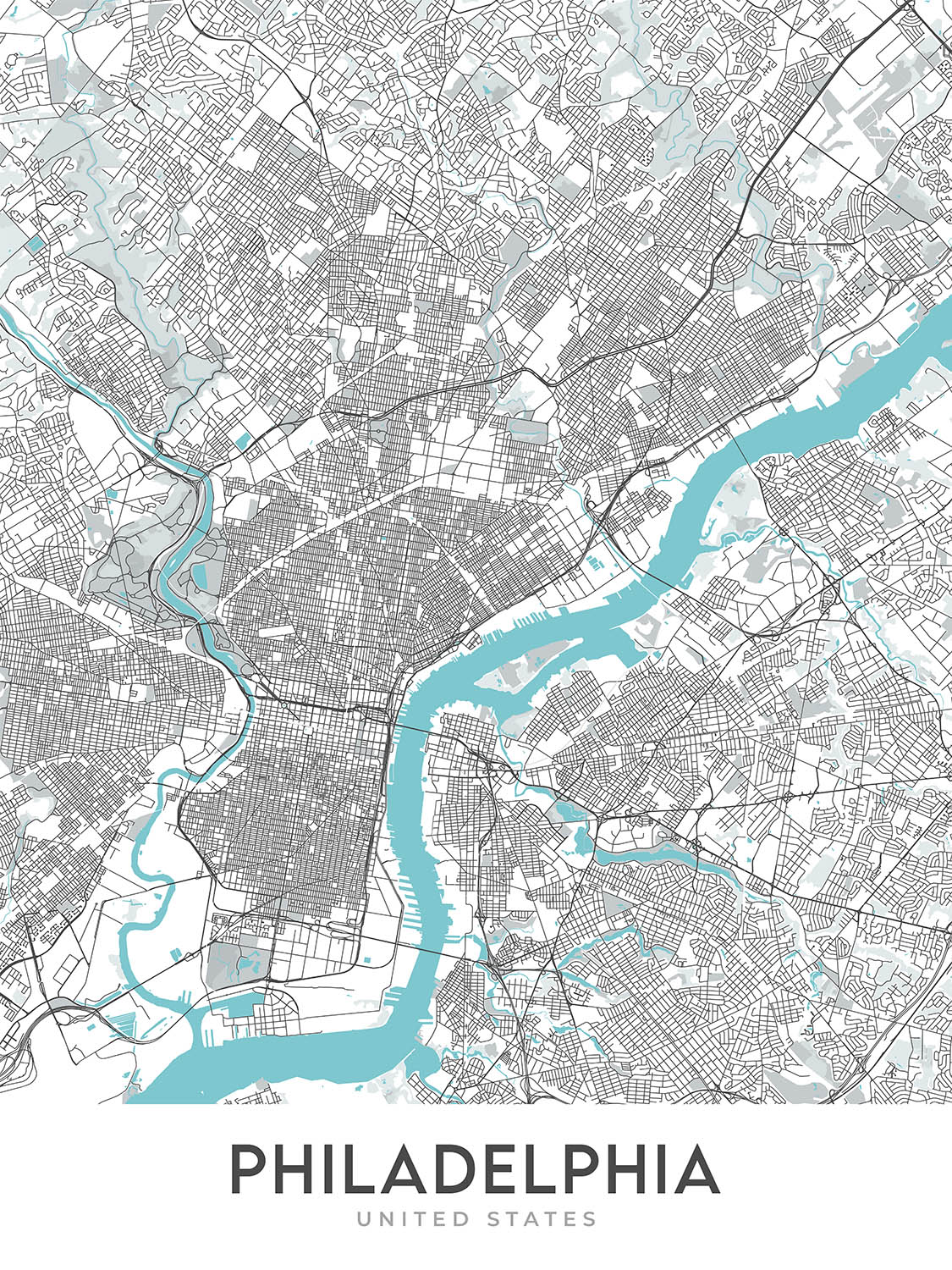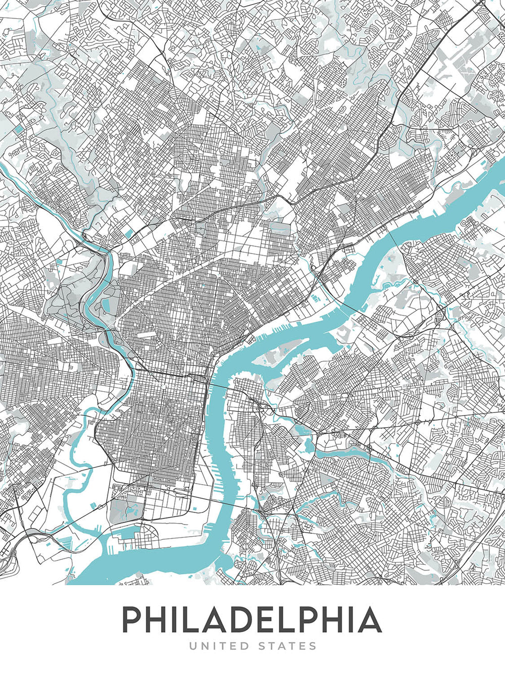Este mapa es una invitación a explorar la rica historia y la cautivadora belleza de Filadelfia y su región circundante. Es imprescindible para cualquiera que aprecie el diseño moderno, el arte cartográfico y el encanto de esta extraordinaria ciudad.