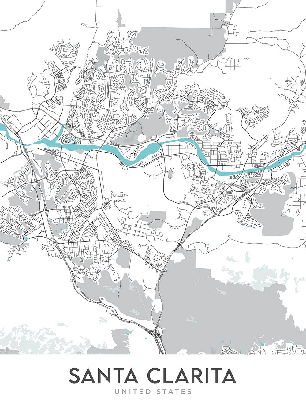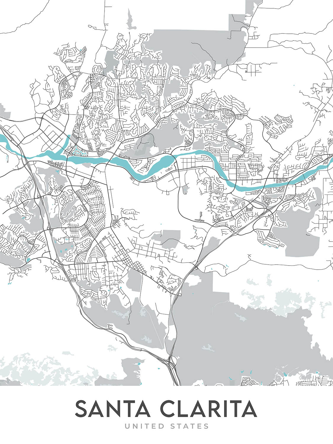 El mapa no solo es visualmente atractivo, sino también altamente funcional. Proporciona una gran cantidad de información sobre Santa Clarita, lo que lo convierte en un recurso valioso para residentes y visitantes por igual. Ya sea que estés buscando una manera de explorar la ciudad o simplemente quieras añadir un toque de estilo moderno a tu hogar, este mapa es la elección perfecta.