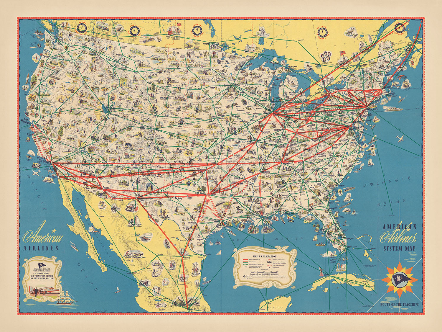 - Contexto sobre el cartógrafo: American Airlines es una importante aerolínea estadounidense, establecida en 1930, que ha desempeñado un papel significativo en el desarrollo de la aviación comercial.