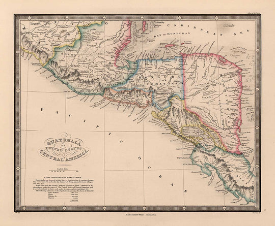 Antiguo mapa de Centroamérica en 1864 por James Wyld: México, Honduras, Costa de Mosquitos, Guatemala, Costa Rica