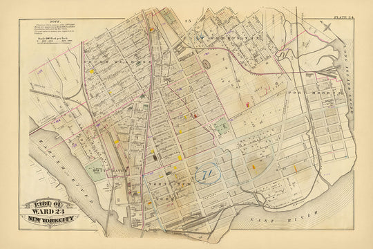 - Significado histórico: El mapa proporciona una vista detallada de la infraestructura y el diseño urbano de parte de la Ciudad de Nueva York a finales del siglo XIX, útil para estudios urbanos históricos y para entender el desarrollo de la ciudad.