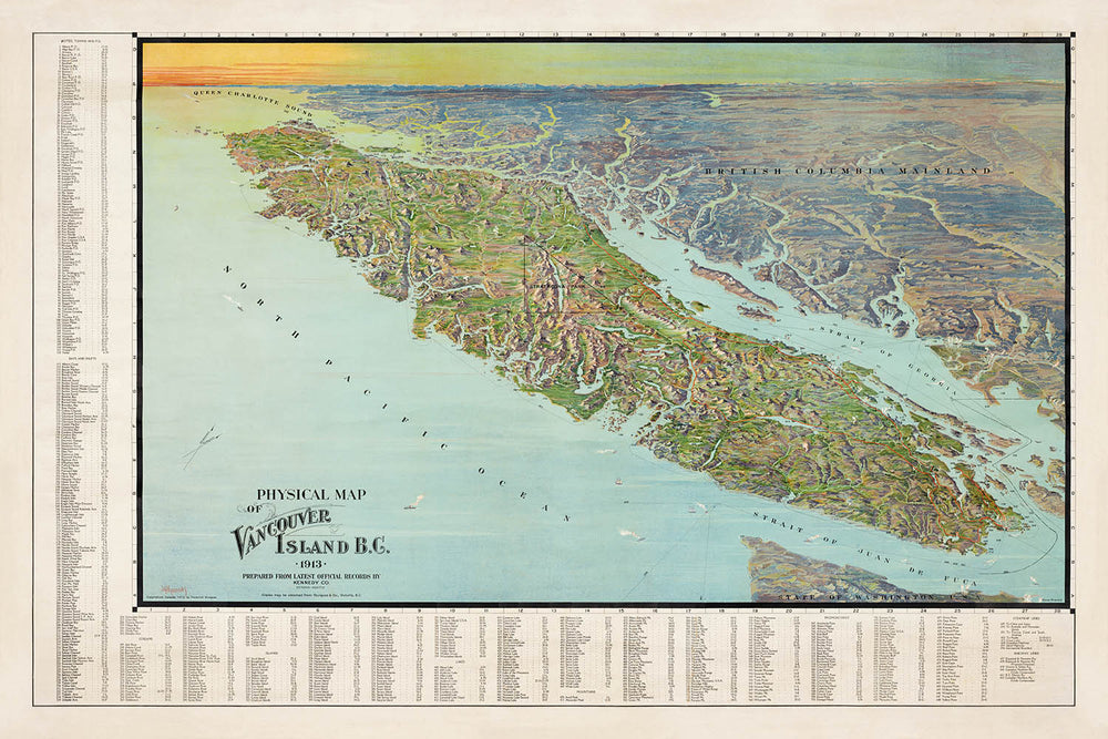 - Name of the map: Physical Map of Vancouver Island B.C.