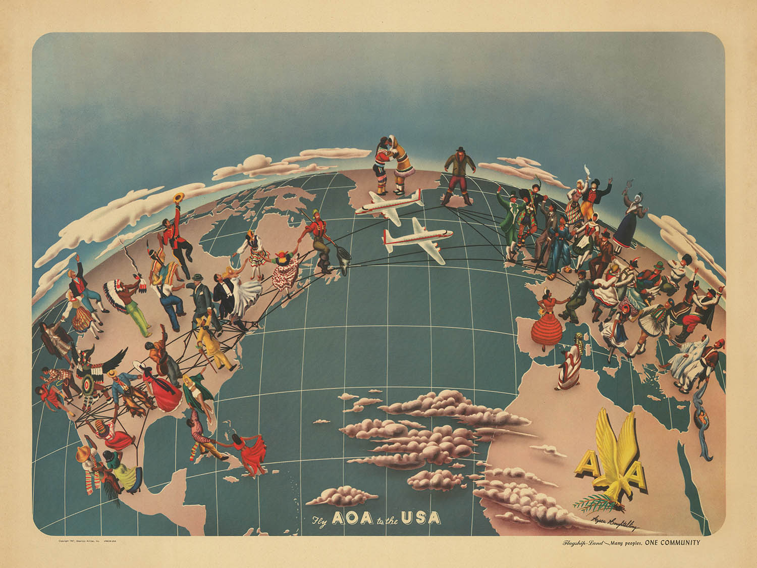 Mapa Mundial de las Antiguas Aerolíneas Americanas en el Extranjero, 1947: Unidad Cultural, Optimismo de la Postguerra, Vista Aérea