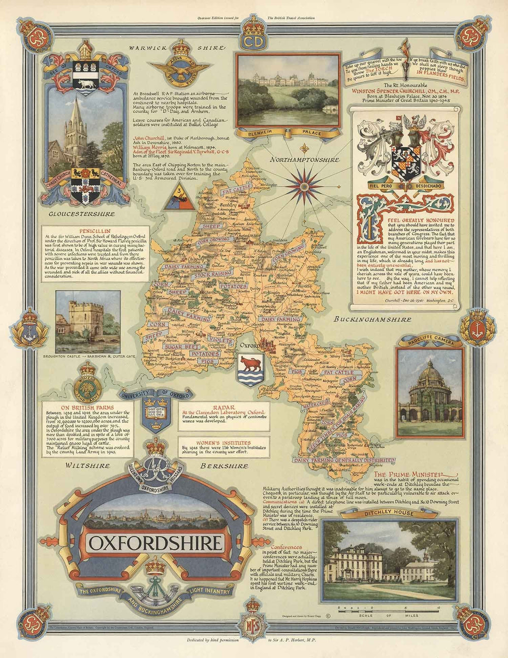 Un encantador mapa temático de Oxfordshire de la posguerra, publicado en 1947 por uno de los mejores cartógrafos de los años 1900, Ernest Clegg.