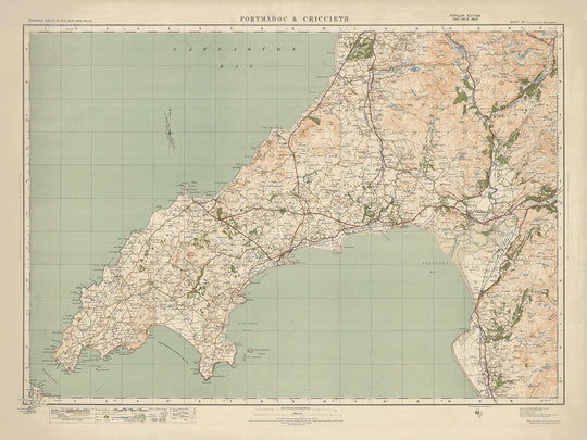 Sumérgete en el pasado con el "Mapa antiguo de estudio de artillería, hoja 49 - Portmadoc & Criccieth, 1925" y descubre los tesoros históricos y los paisajes cautivadores de esta extraordinaria región de Caernarvonshire, Gales.