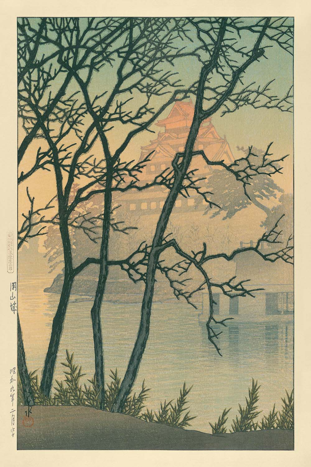 Amanecer en el Castillo de Okayama por Hasui Kawase, 1935