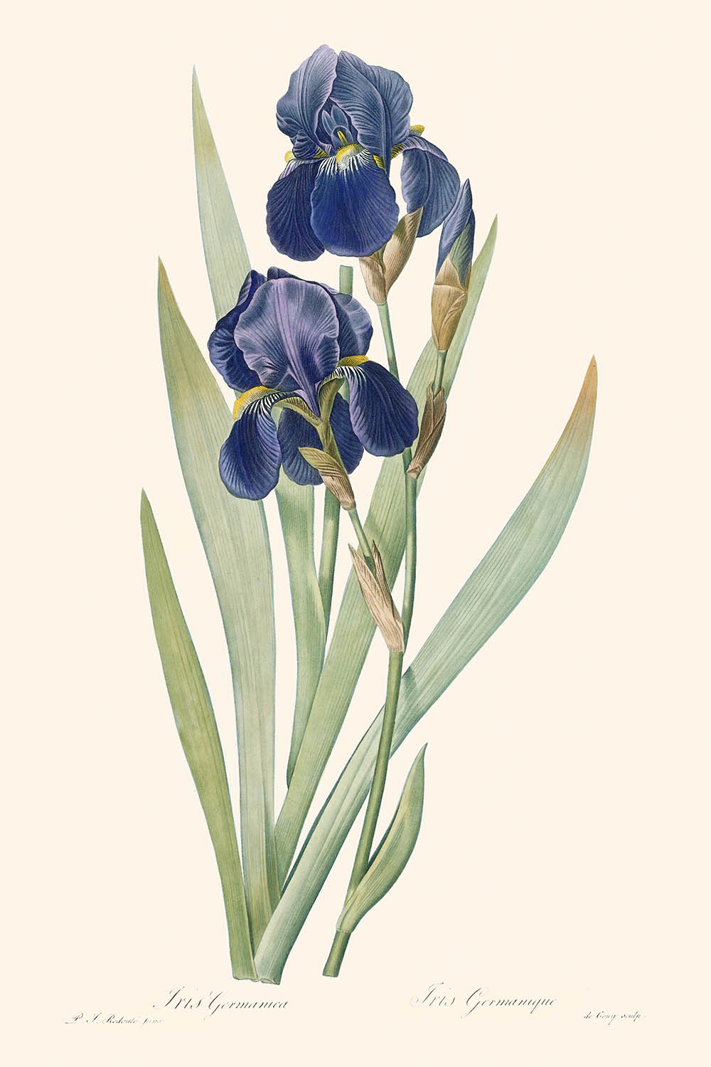 Ilustración botánica de Iris Germanica por Pierre-Joseph Redouté, 1827
