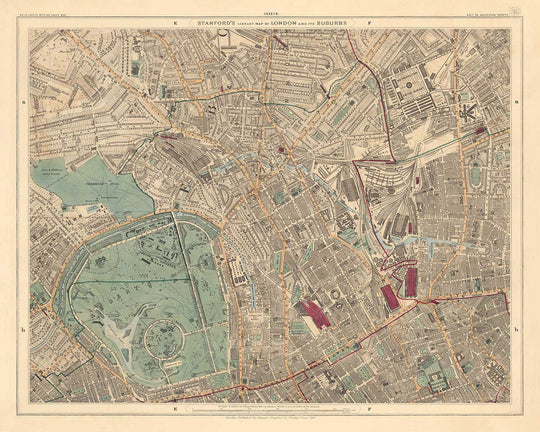 Originalmente aclamado como "el mapa más perfecto de Londres que se ha emitido" por la Royal Geographical Society cuando se publicó en 1862, es seguro decir que el mapa de Londres de Edward Stanford fue una obra maestra de la cartografía. Este es un hermoso mapa coloreado a mano de la edición de 1891 del mapa de Stanford.