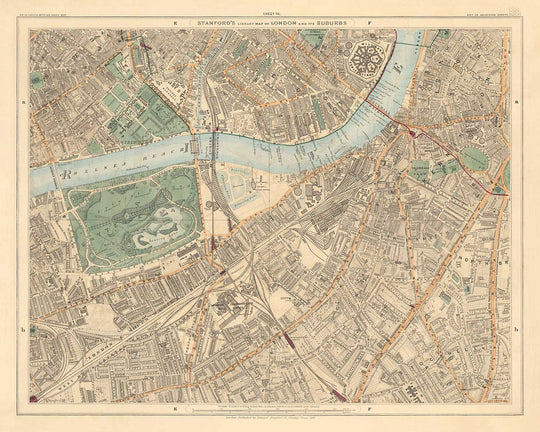 Originalmente aclamado como "el mapa más perfecto de Londres que se ha emitido" por la Royal Geographical Society cuando se publicó en 1862, es seguro decir que el mapa de Londres de Edward Stanford fue una obra maestra de la cartografía. Este aquí es un hermoso mapa coloreado a mano de la edición de 1891 del mapa de Stanford.