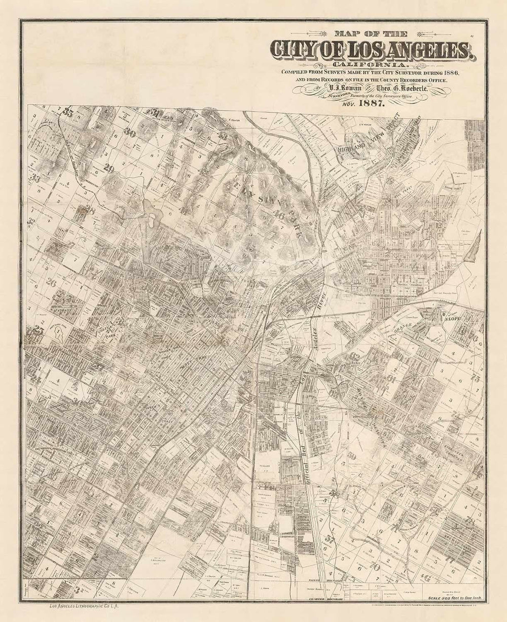 Viejo mapa de Los Ángeles, 1887: Gráfico de la ciudad rara