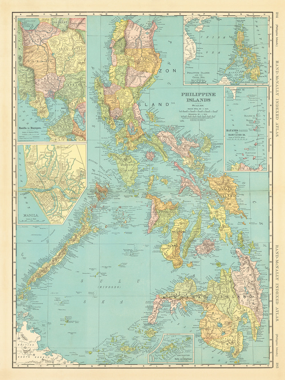 Mapa antiguo de Filipinas de Rand McNally, 1904: Manila, Luzón, Samar, Cebú y Mindanao