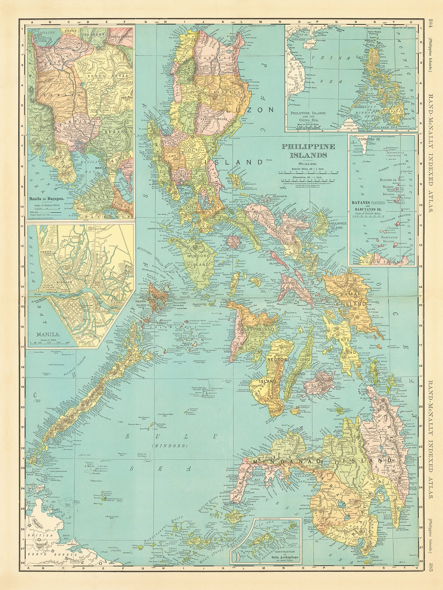 El antiguo mapa de Filipinas de Rand McNally muestra la rica historia y la cautivadora geografía de esta nación insular del sudeste asiático. Creado en 1904, este mapa ofrece una visión de Filipinas a principios del siglo XX, capturando ciudades importantes, maravillas naturales y eventos históricos que dieron forma al país.